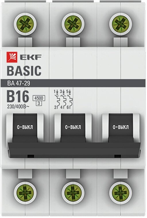 Автоматический выключатель 3P 16А (B) 4,5кА ВА 47-29, EKF Basic информация: