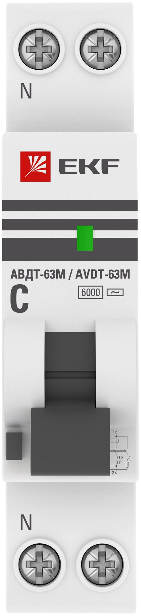 Дифференциальный автомат АВДТ-63М 6А- 30мА (1мод., хар.C, электронный тип AС) 6кА EKF PROxima