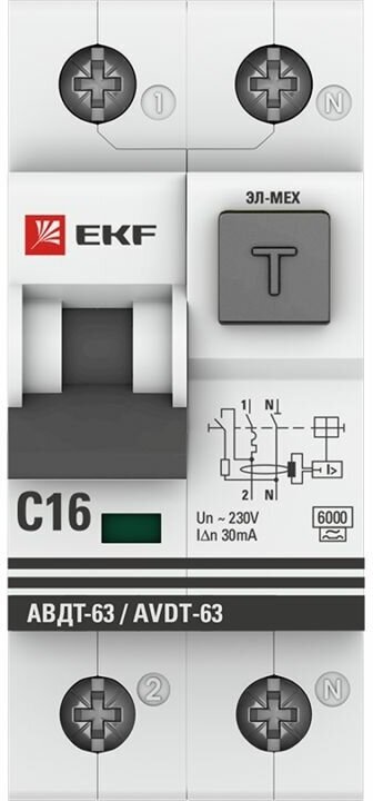 Автоматический дифференциальный выключатель EKF АВДТ-63 2п 16А 30мА DA63-16-30 . информация: