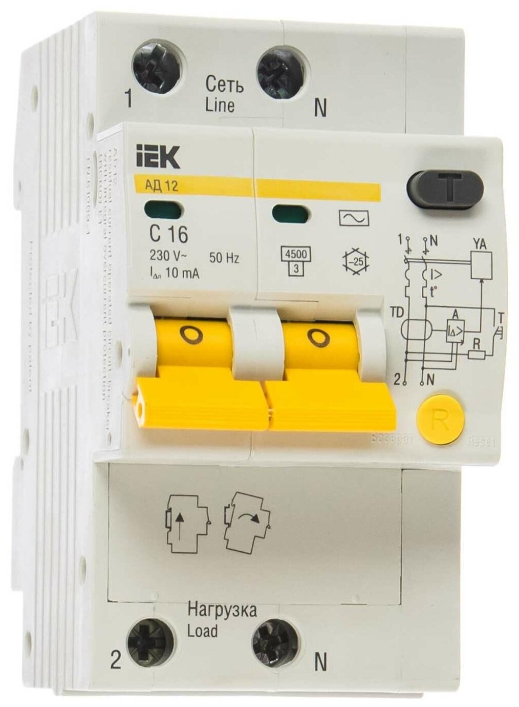 Дифференциальный автомат IEK АД 12 2П 10 мА C 4.5 кА AC 16 А информация: