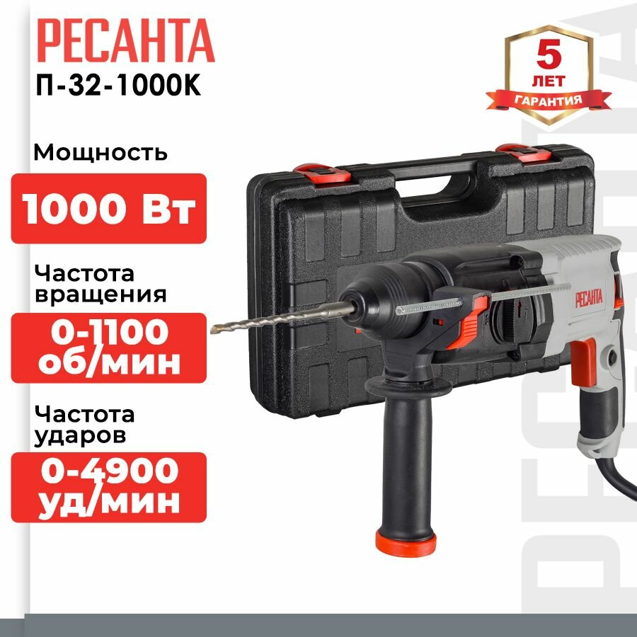 Перфоратор РЕСАНТА П-32-1000К, без аккумулятора 1000 Вт