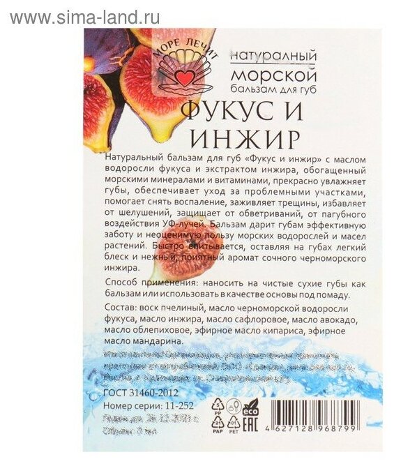 Бальзам для губ МореЛечит "Фукус и инжир", 5 г информация: