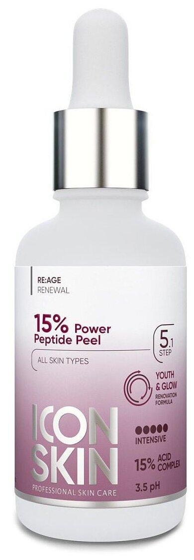 Антивозрастной пилинг для лица Icon Skin 15% комплекс кислот с пептидами, 30 мл информация: