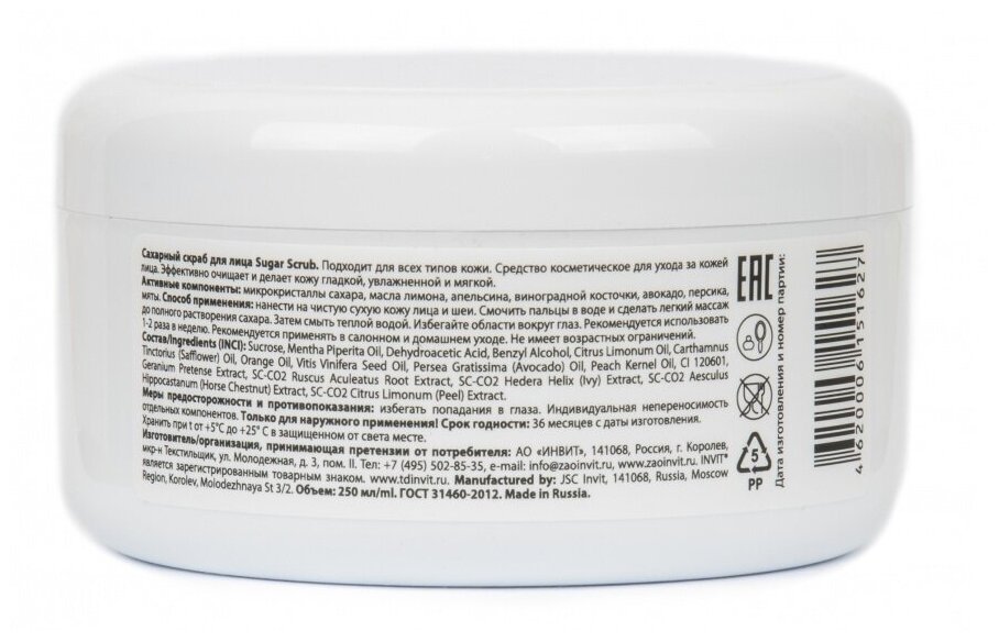 Скраб сахарный для лица / Invitel Aqua Sugar Scrub 250 мл информация:
