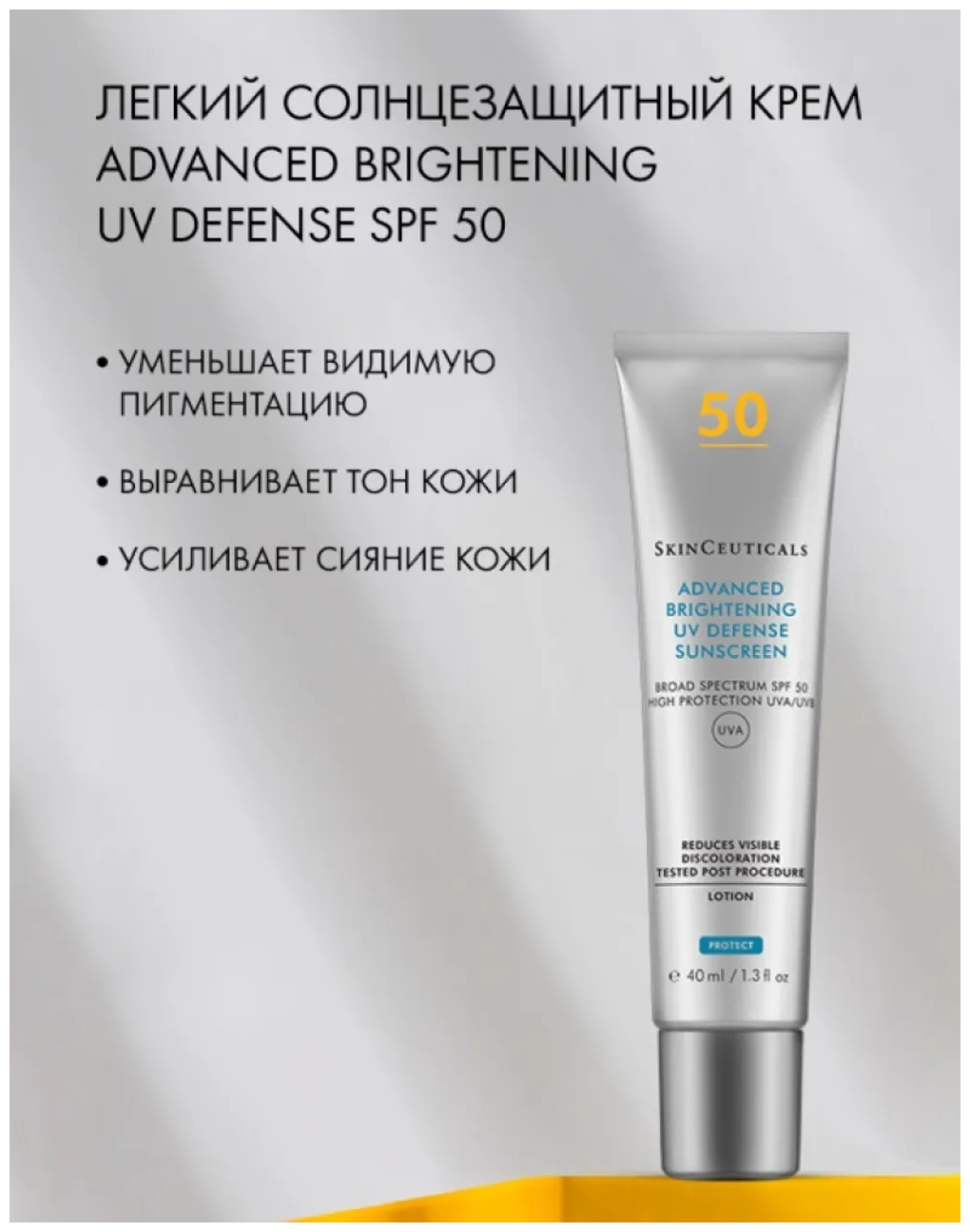 SkinCeuticals ADVANCED BRIGHTENING UV DEFENSE SPF 50 Легкий солнцезащитный крем для ровного тона кожи, 40 мл информация: