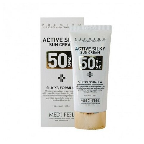 MEDI-PEEL Солнцезащитный крем с комплексом пептидов и шёлка Active Silky Sun Cream SPF50+PA+++ 50 мл.