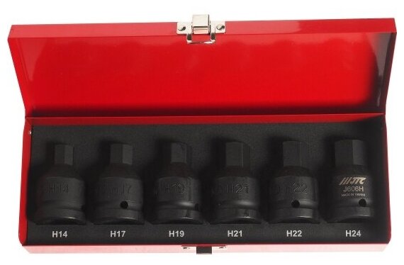 JTC-J606H Набор головок ударных HEX 3/4" H14-H24, длина 61мм (в кейсе) 6шт