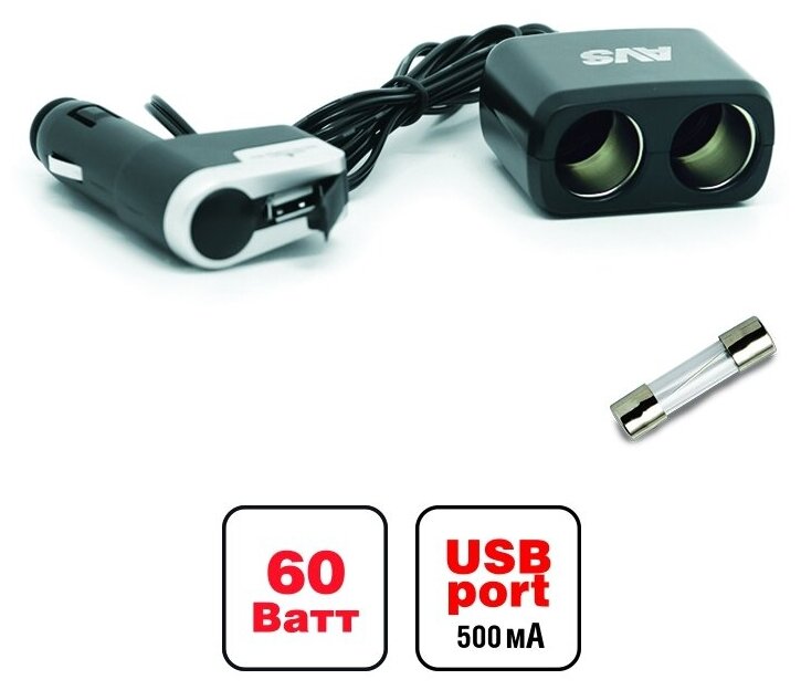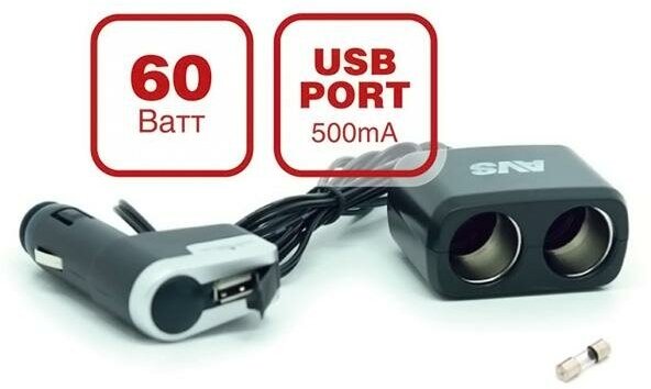 10 цен на Разветвитель прикуривателя 12/24V (на 2 выхода + USB) AVS CS213U