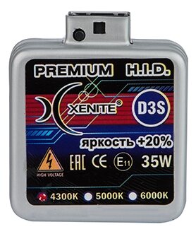 1002016_лампа! ксеноновая D3S PK32d-5 35W 42V Premium (Яркость +20%) (4300K) (упак. 1шт.)\ XENITE информация:
