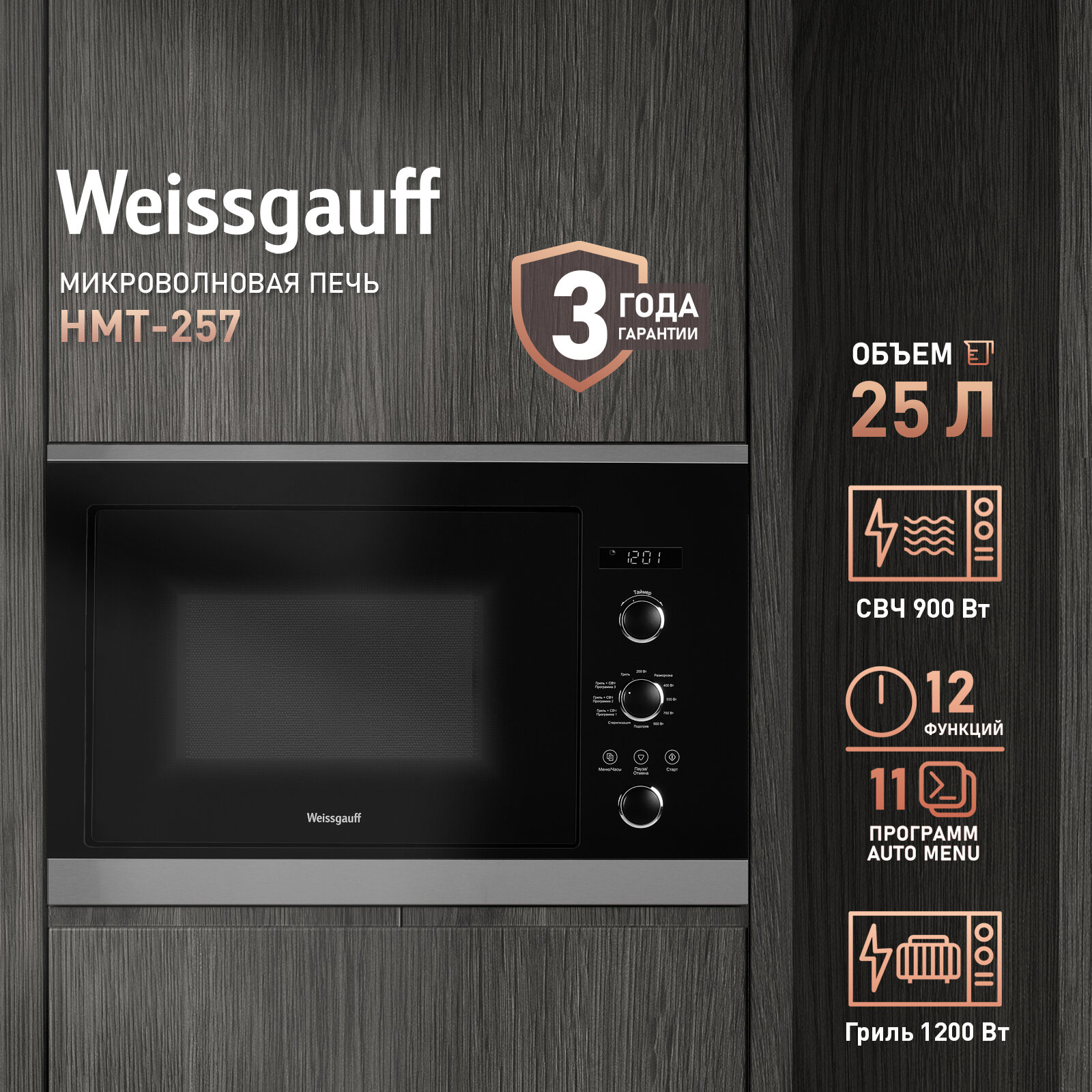 Встраиваемая микроволновая печь Weissgauff HMT-257 информация: