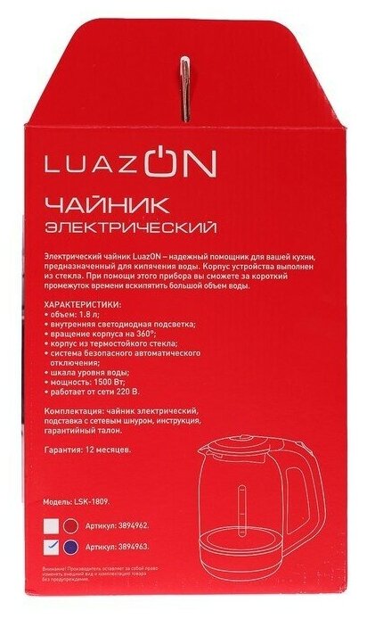 Luazon Home LSK-1809 Чайник электрический 3894963 .