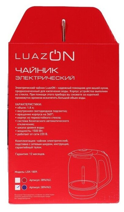 Luazon Home LSK-1809 Чайник электрический 3894963 . информация: