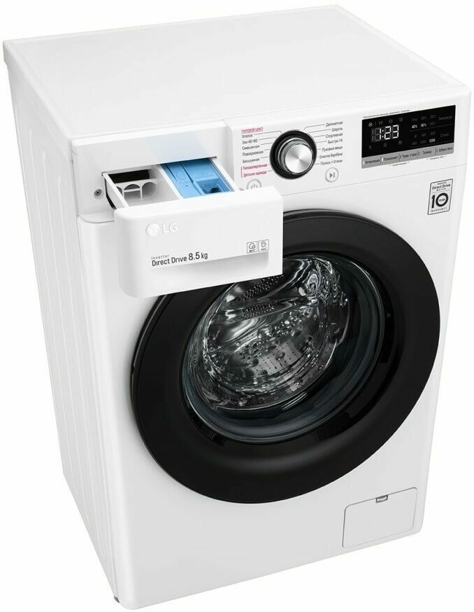 Стиральная машина фронтальная LG F2V3GS6W белый/черный (8,5 кг, диспл, дозагрузка)