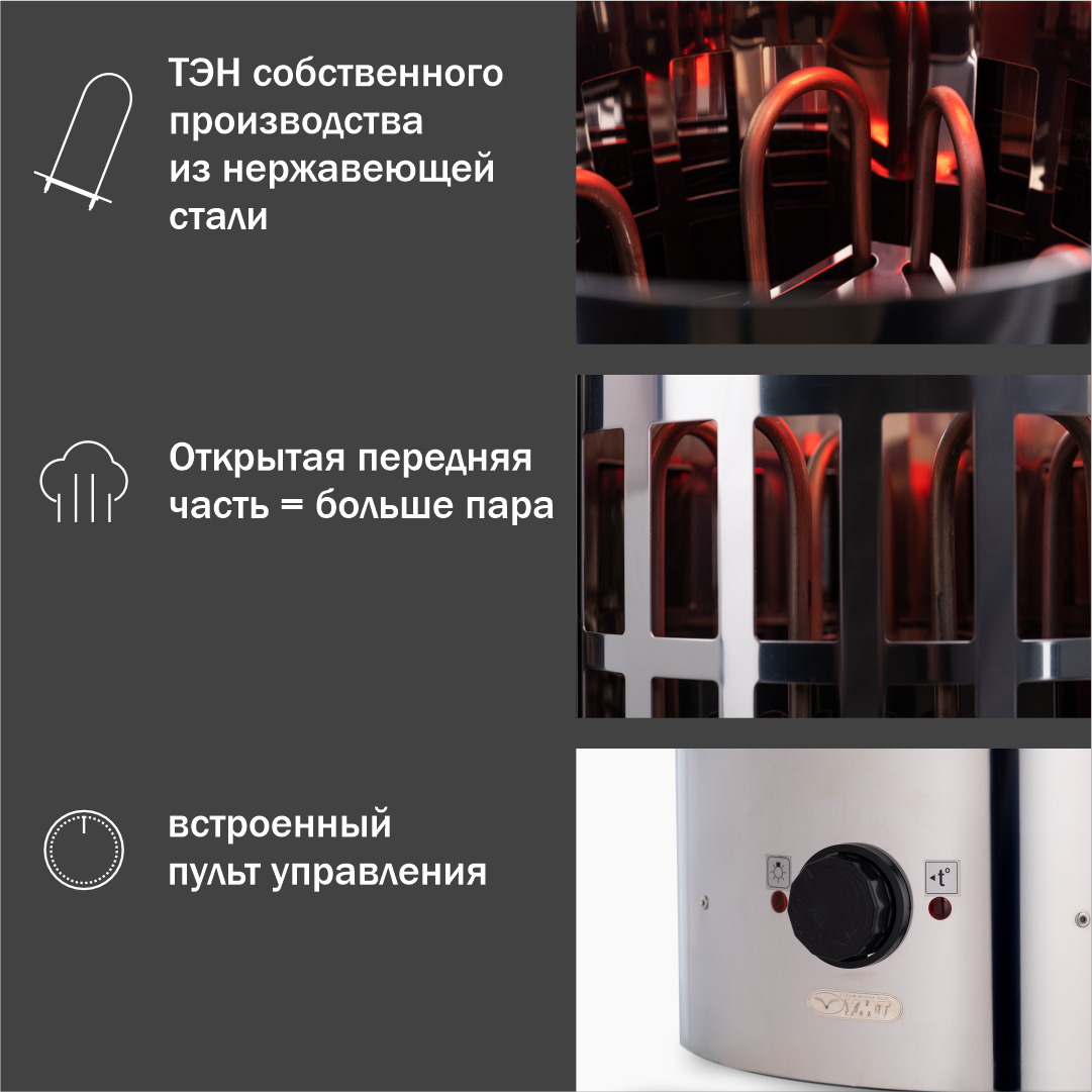 Электрокаменка для сауны УМТ "Сфера" ЭКМ-4,5 кВт/220В, корпус из нержавеющей стали, со встроенным пультом информация: