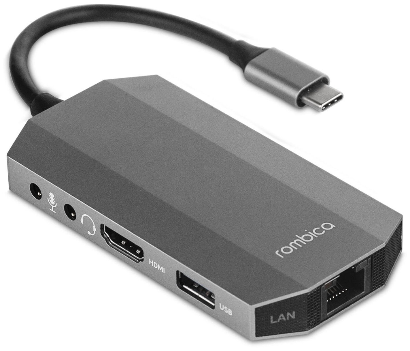 Разветвитель USB Rombica Type-C M7, USB 3.0 x 2, Type-C PD, HDMI, LAN, картридер, аудио+микрофон, алюминий, серый