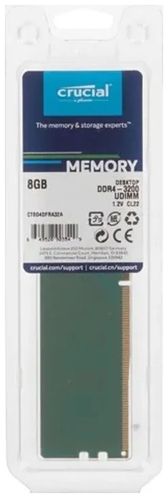 Оперативная память Crucial DDR4 8Gb 3200MHz pc-25600 (CT8G4DFRA32A) информация: