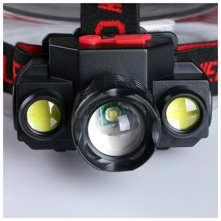 Фонарь налобный аккумуляторный, 3 режима, 7.5х6 см, заряд USB
