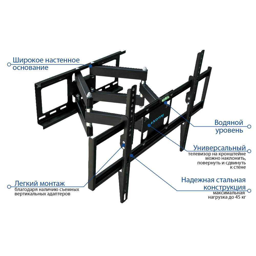 Kromax OPTIMA-409 черный 32"-65" макс.45кг настенный поворотно-выдвижной и наклонный 3 613 ₽