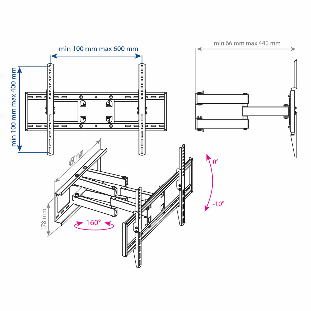 Кронштейн настенный Kromax OPTIMA-409 32-65" (наклон 0°/+10°, поворот 160°, до 45 кг, черный) 3 790 ₽