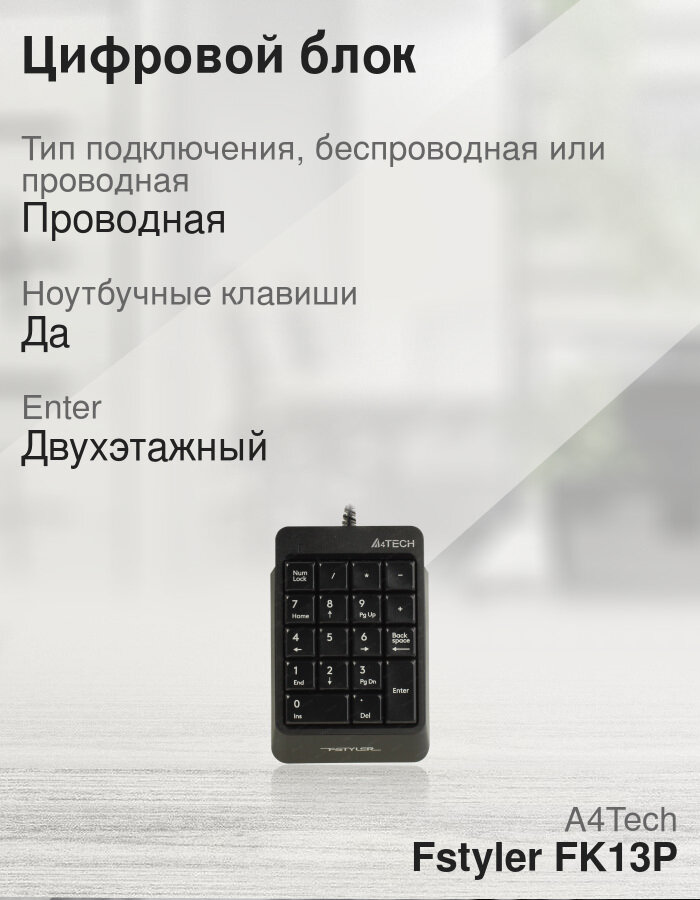 Цифровой блок A4Tech Fstyler FK13P, мембранная, проводная, USB, черный