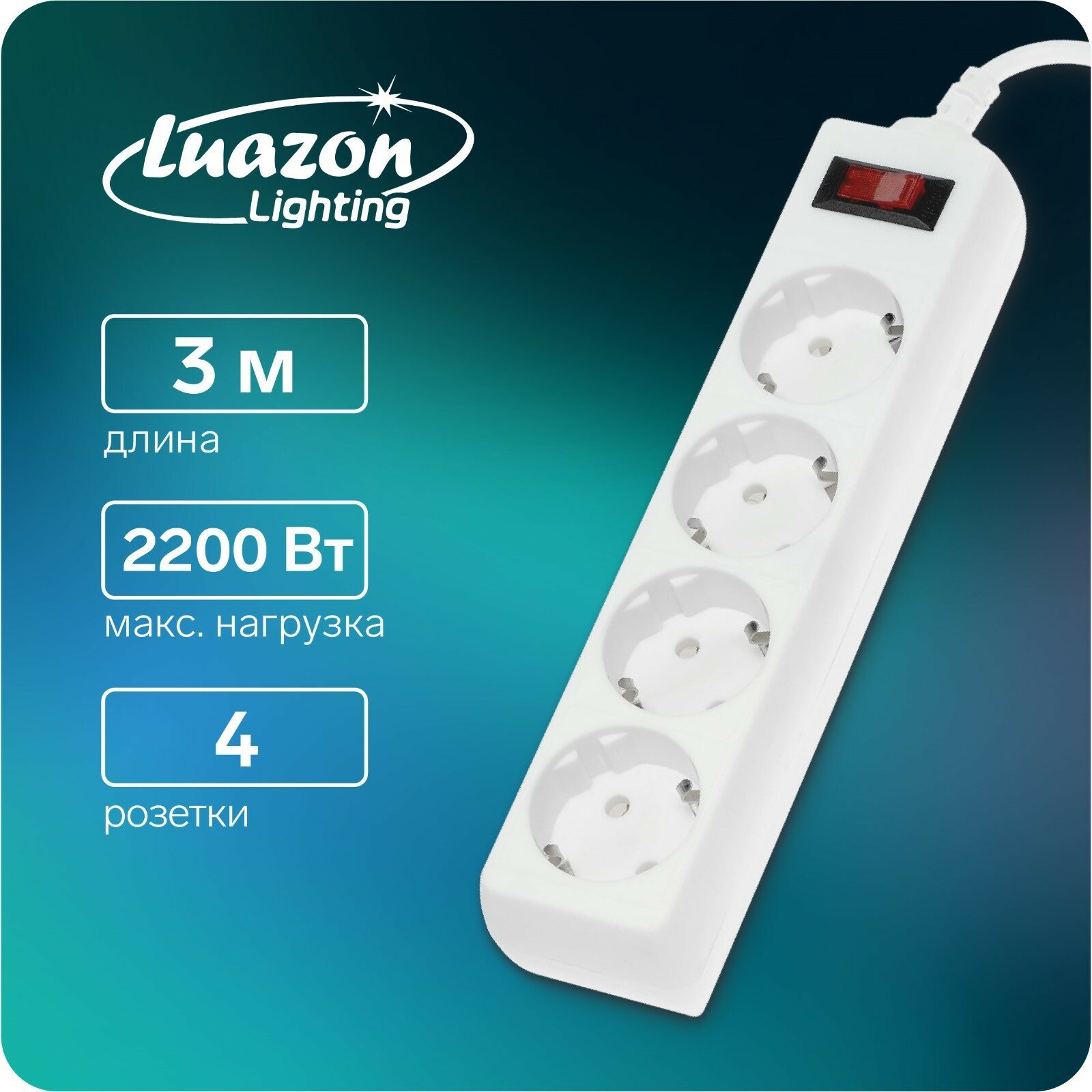 Сетевой фильтр Luazon Lighting, 4 розетки, 3 м, 2200 Вт, 3 х 0.75 мм2, 10 А, 220 В, белый информация: