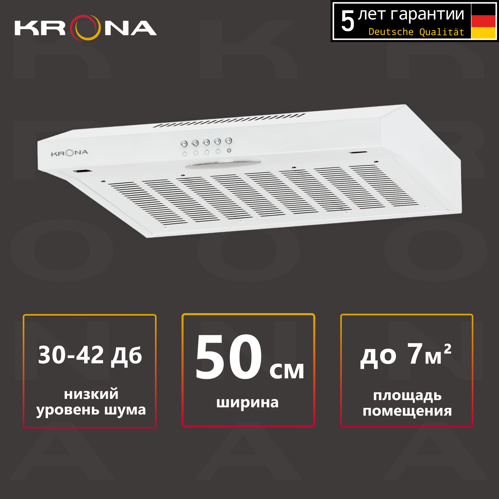 Вытяжка козырьковая Krona Ermina 500 белый управление: кнопочное (1 мотор)