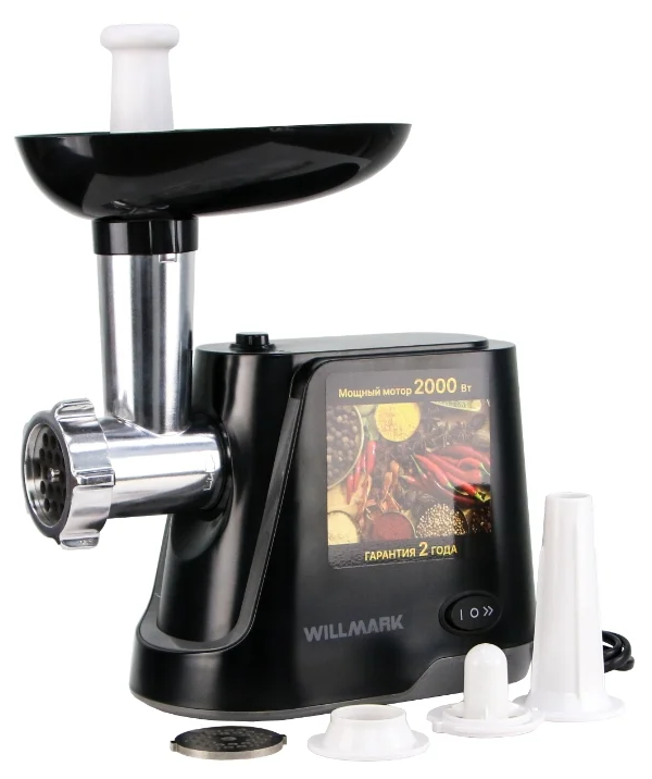 Электромясорубка WILLMARK WMG-2013B (2000Вт,реверс, насадка д/кеббе, сос. 2 реш., чер, 2 г. гар)