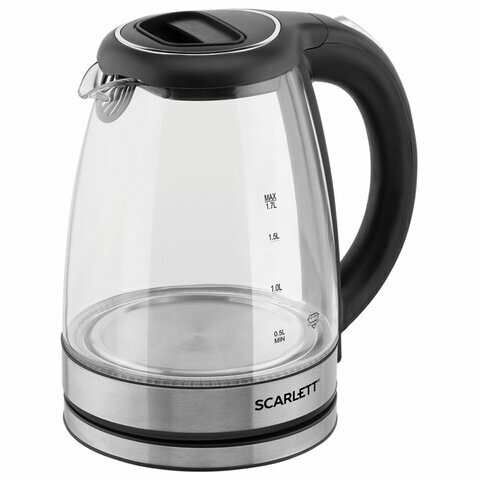 Отзывы на Чайник SCARLETT SC-EK27G72, 1,7 л, 2000 Вт, закрытый нагревательный элемент, стекло, черный