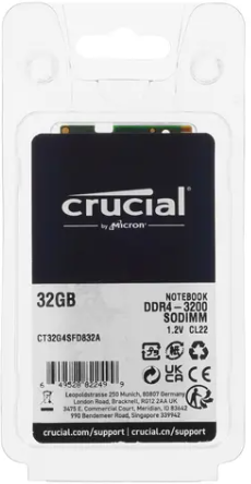 Отзывы на Модуль памяти SODIMM DDR4 32GB Crucial CT32G4SFD832A PC4-25600 3200MHz CL22 260pin 1.2V