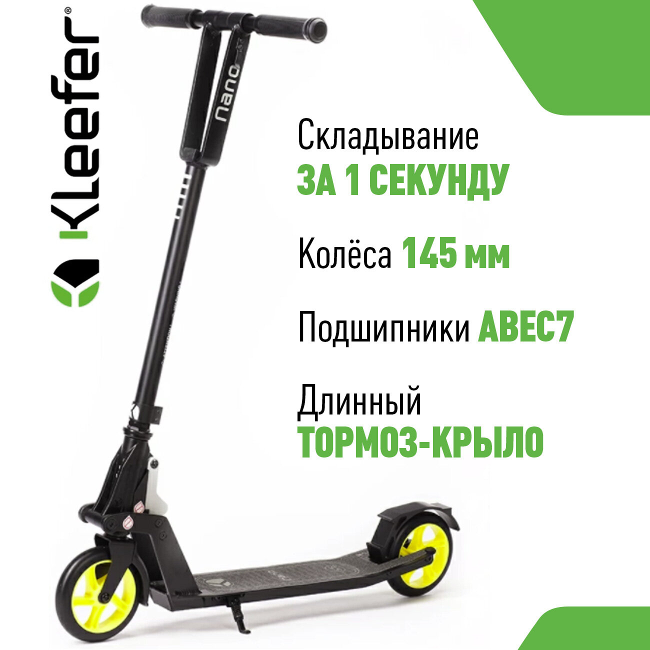 Городской складной самокат для детей Kleefer Nano 145 мм - чёрный/жёлтый информация: