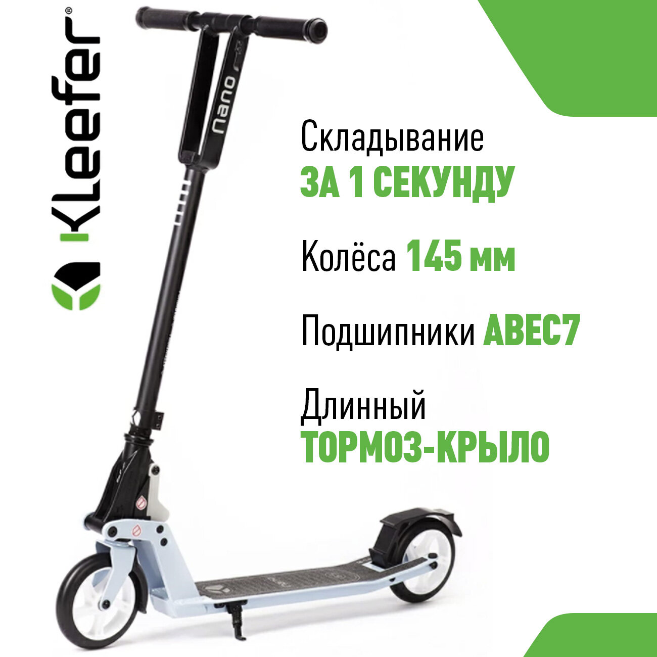 Городской складной самокат для детей Kleefer Nano 145 мм - синий информация: