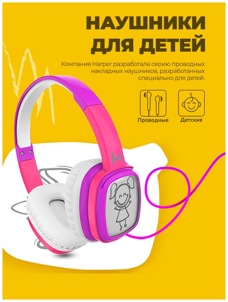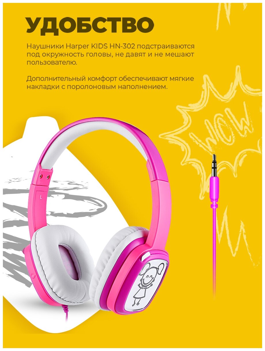 Наушники HARPER KIDS HN-302 проводные, накладные, розовый