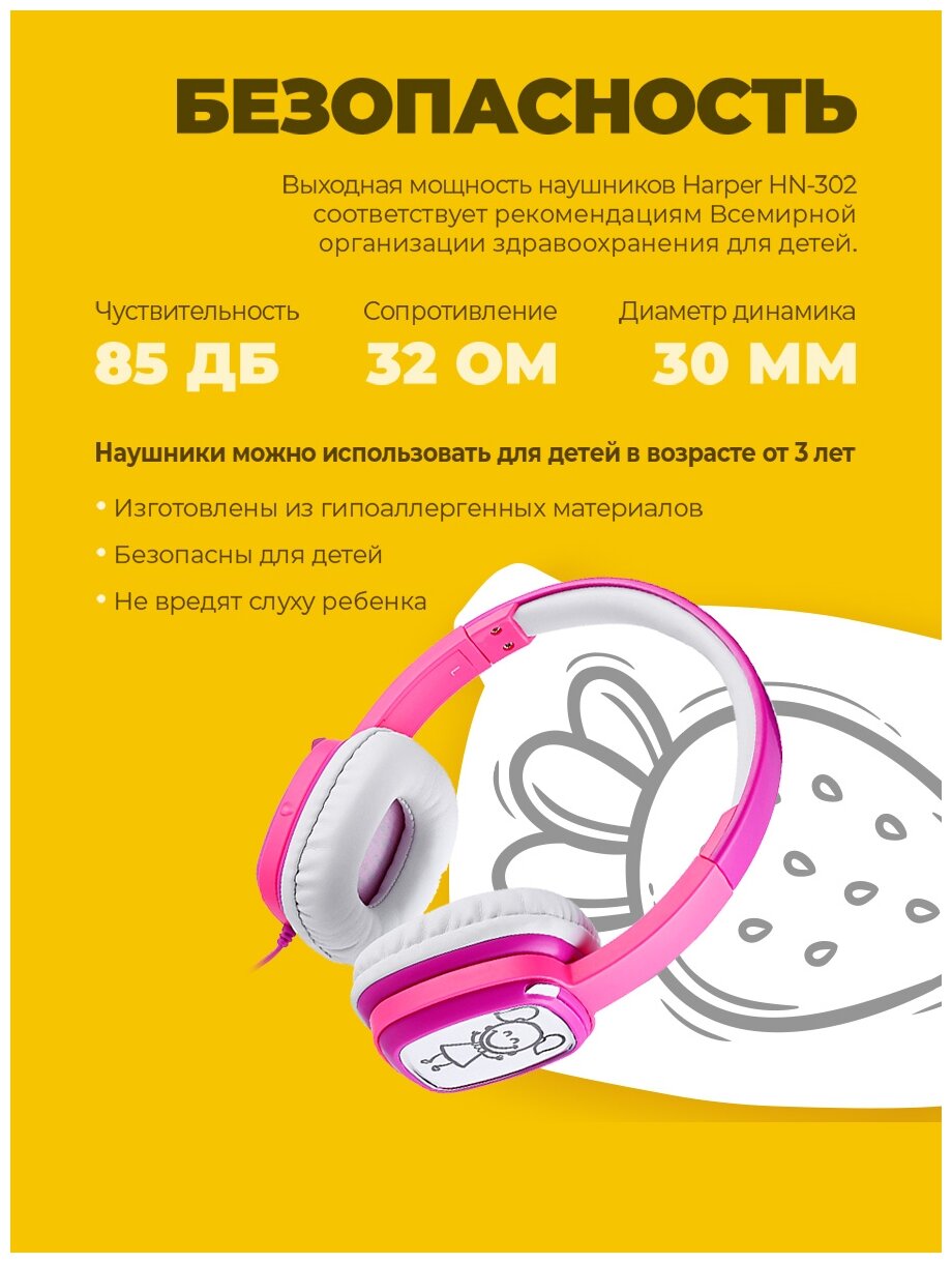 Наушники Harper KIDS HN-302 Pink (накладные, проводные, детские)