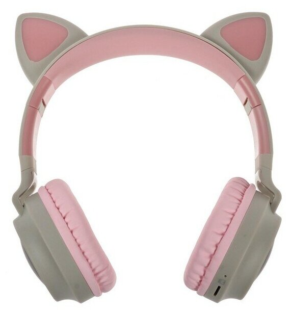 Наушники светодиодные кошачьи уши Cat ears, серые с розовым