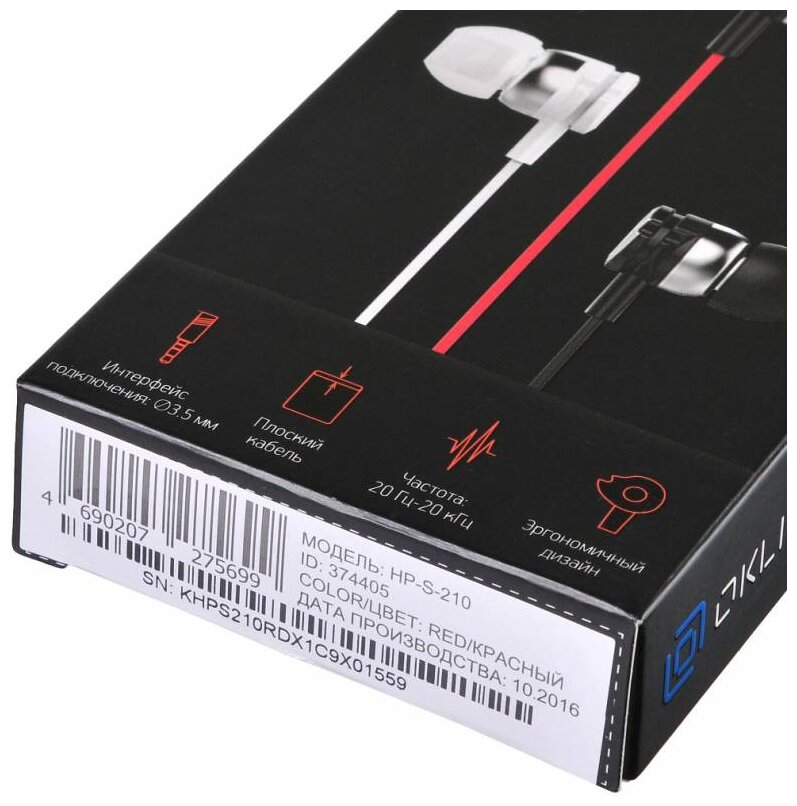 Наушники вкладыши OKLICK HP-S-210 1,2 м, красный, проводные, в ушной раковине (D1-1)