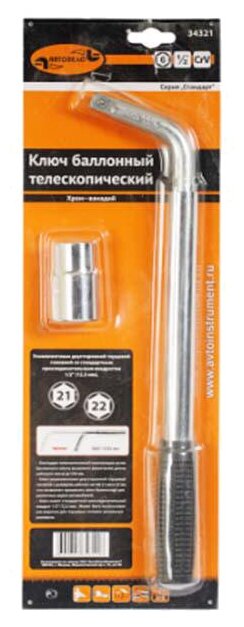 Ключ баллонный телескопический 21х22 мм L-360х530 мм 34321 АвтоDело информация: