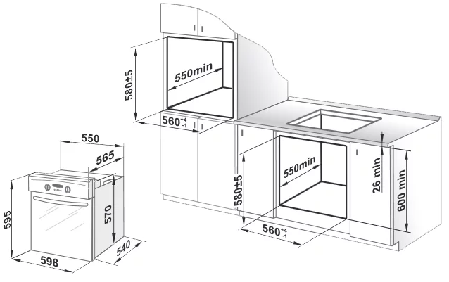 Духовой шкаф встраиваемый LEX EDM 077 C IV, 60 см, с конвекцией, механические ручки, объем 60 л, аналоговый таймер, телескопические направляющие.