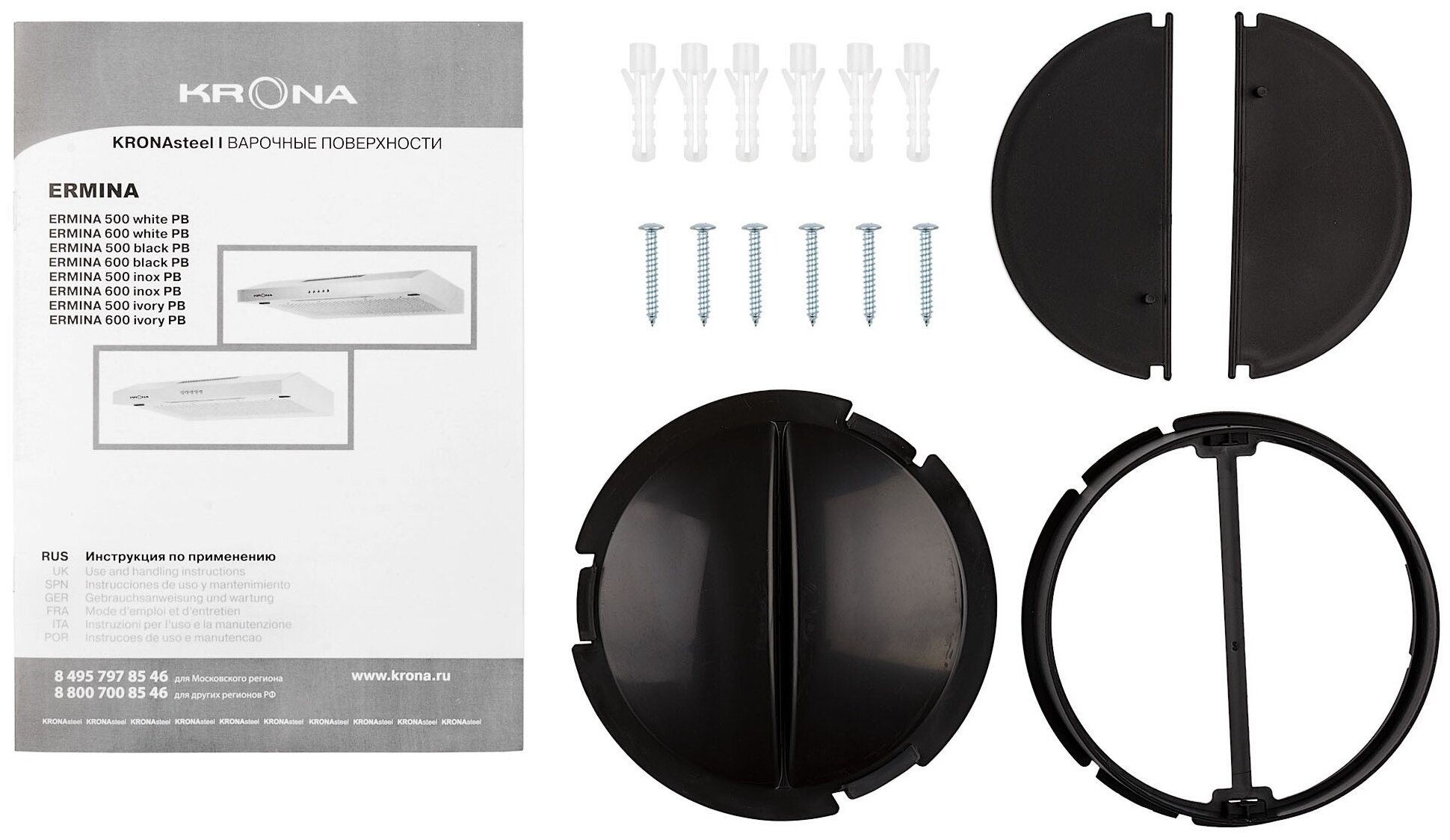 Вытяжка козырьковая Krona Ermina 600 черный управление: кнопочное (1 мотор)