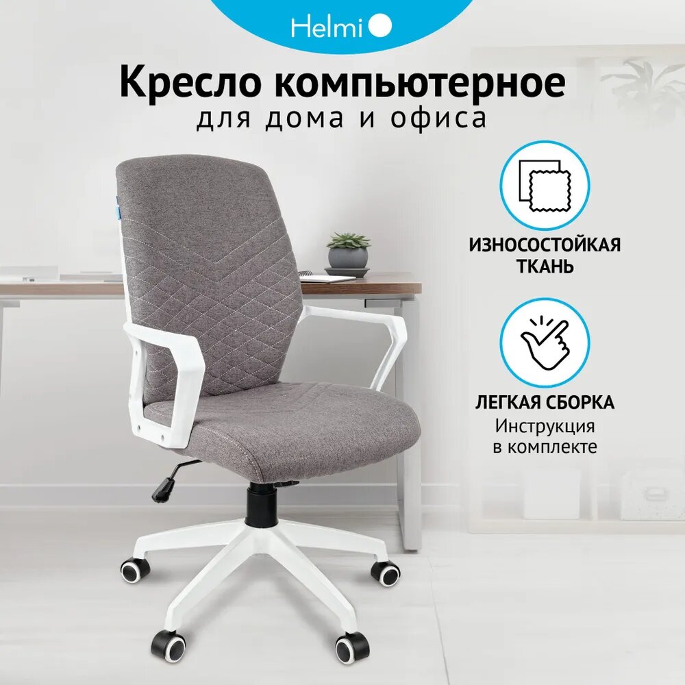 Компьютерное кресло Helmi HL-М05 "Ambition"/Серое и белое, сиденье из ткани, с подлокотниками, на колесиках, с регулируемой спинкой/Офисный компьютерный стул, мебель для дома 14 345 ₽