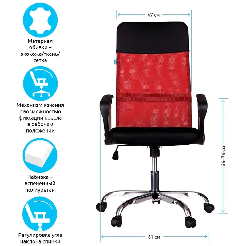 Отзывы на Кресло руководителя Helmi HL-E16 "Content", ткань/сетка/экокожа черная/красная, хром
