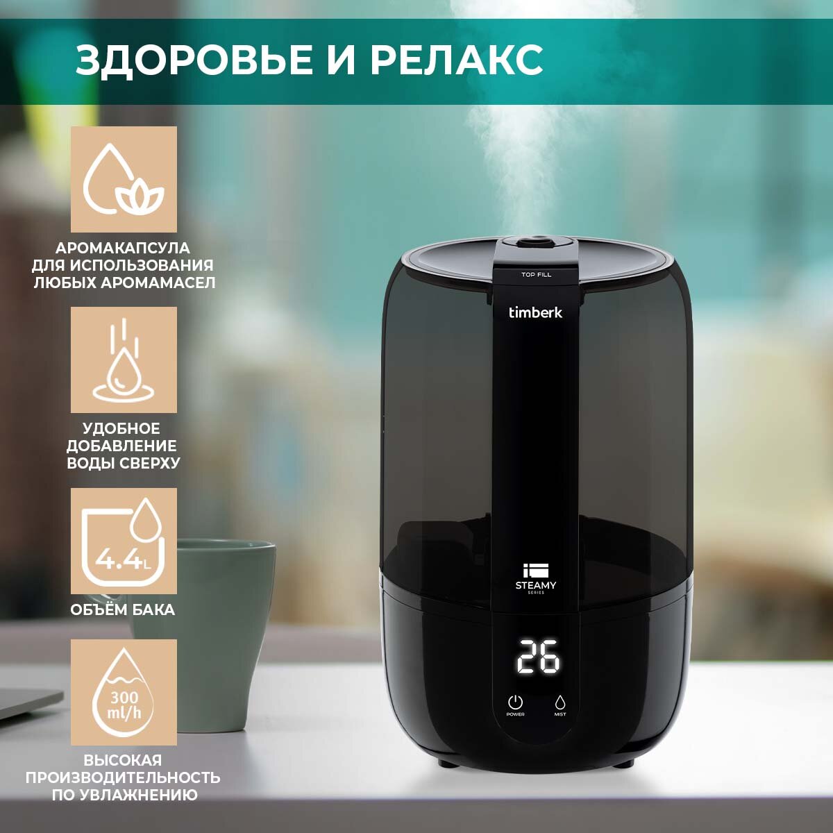 Увлажнитель воздуха 4.4 л Timberk THU UL 37 E E1 с аромакапсулой