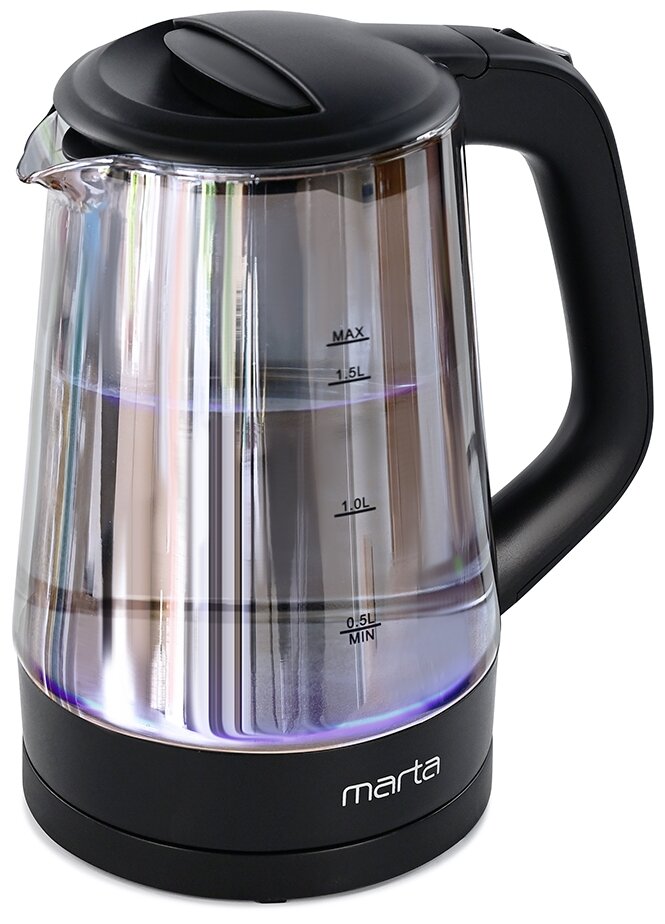 Электрический чайник MARTA MT-KT4655A черный стеклянный с заварником, 1.8 л