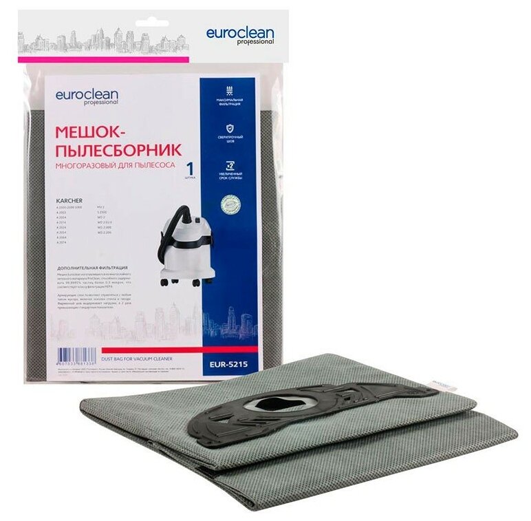 Пылесборник EUROCLEAN EUR-5215 многоразовый с застежкой, для KARCHER упак. 1 шт. / мешки для пылесоса
