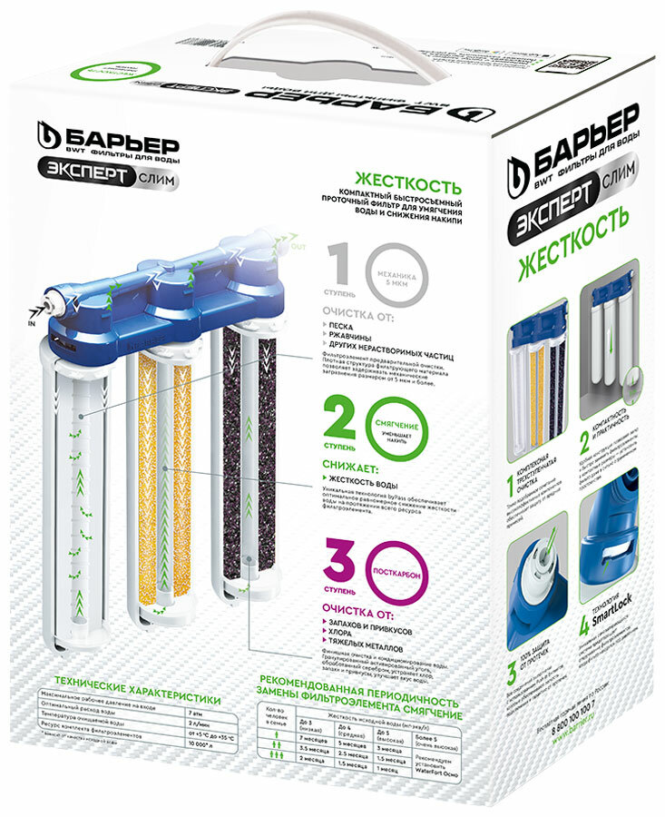 Фильтр под мойку для очистки воды трехступенчатый, быстросъемный барьер эксперт слим Жесткость защищает от накипи информация: