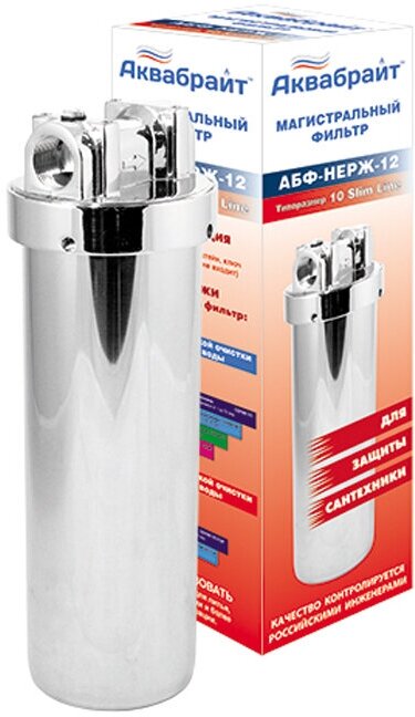 Магистральный фильтр Аквабрайт АБФ-НЕРЖ-12, Slim Line 10", 1/2"