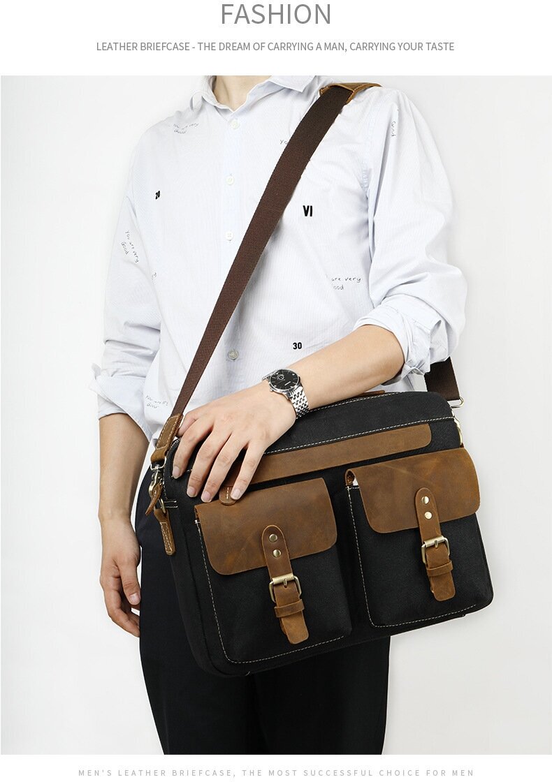 Отзывы на Сумка-портфель MyPads Premium 9772 из качественной импортной ткани Канвас со вставками из натуральной коровьей кожи для ноутбука 14 дюйма вместит...