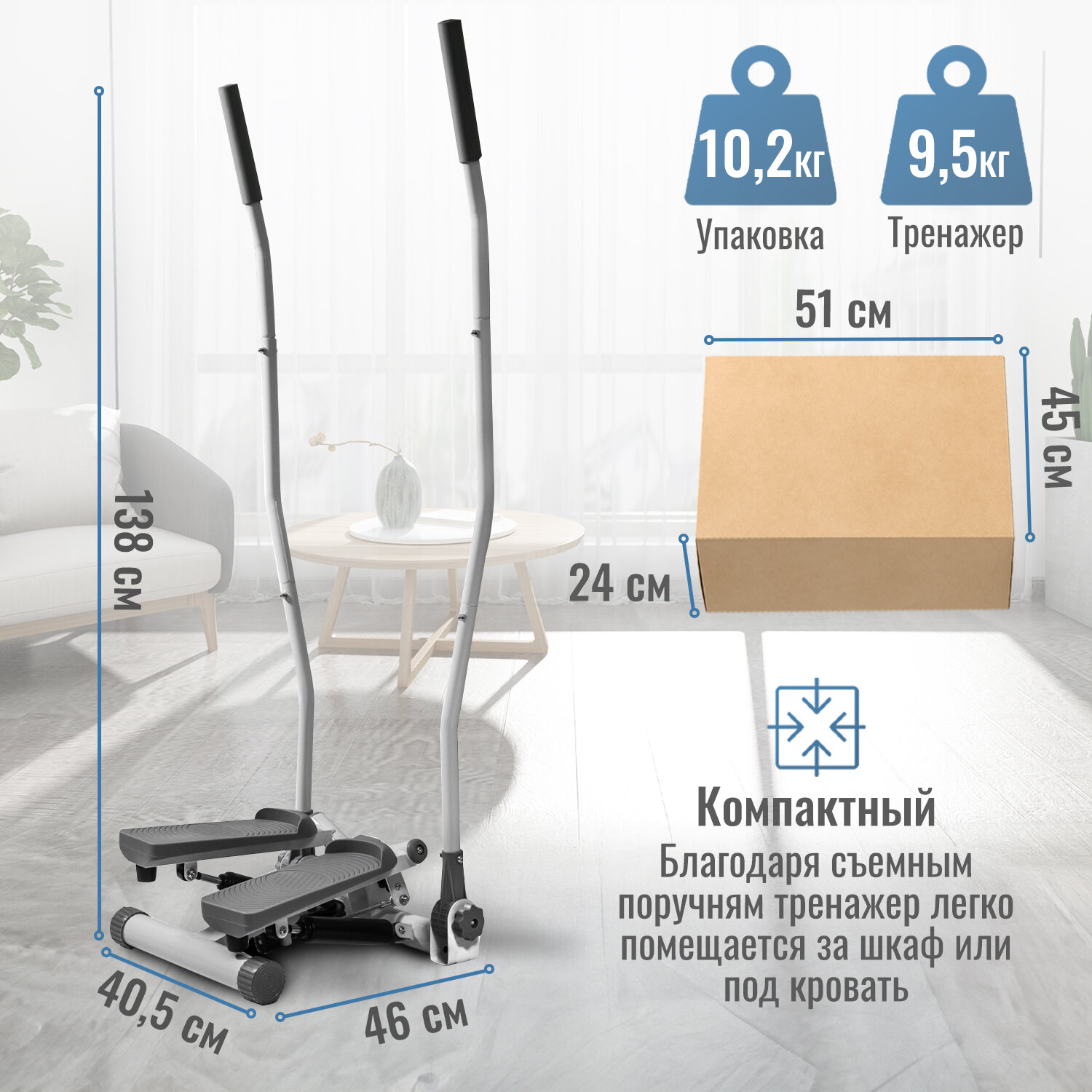 Тренажёр для ходьбы, Мини-степпер,12-ступенчатая регулировка сопротивления. Активная и пассивная интеграция