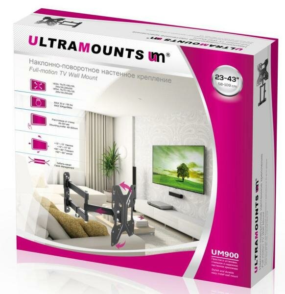 Отзывы на Кронштейн для телевизора Ultramounts UM 900 черный 23-43 макс.30кг настенный поворотно-выдвижной и наклонный