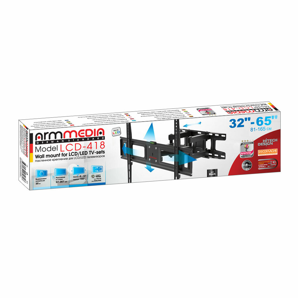 Кронштейн наклонно-поворотный Arm Media LCD-418 32-65' до 35кг Vesa до 600x400 black 3 890 ₽