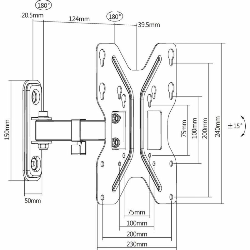 Кронштейн настенный Ultramounts UM898 для 23"-43" до 30кг, от стены 49-184мм, VESA 75x75,100x100,200x100,200x200, наклон до 15° и подъем до 15°, вле